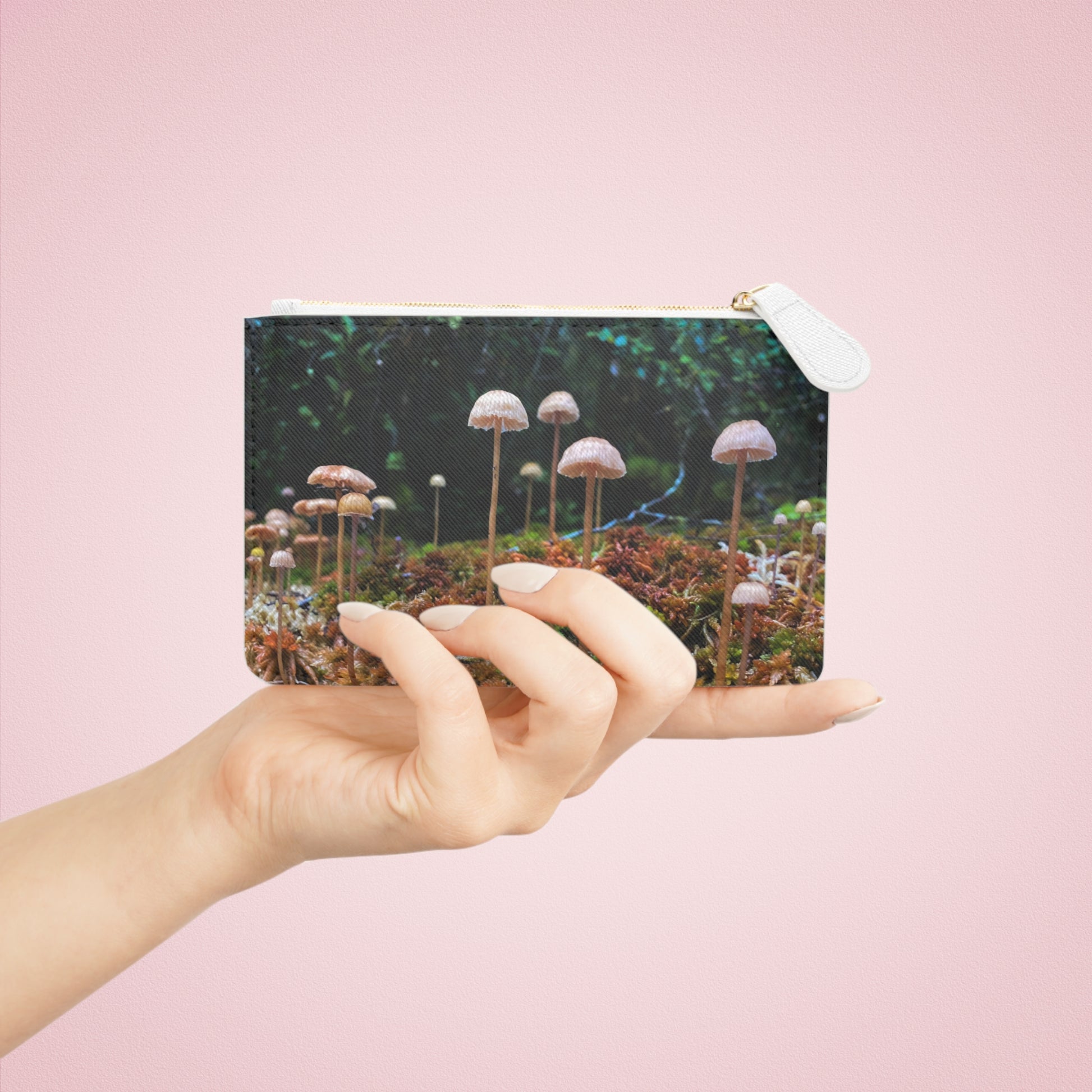 Milford Mushrooms Mini Clutch Bag | Cute Eco-Friendly Makeup Pouch, Handmade Gift, Nature Lover Accessory, Mushroom Art, Boho Style